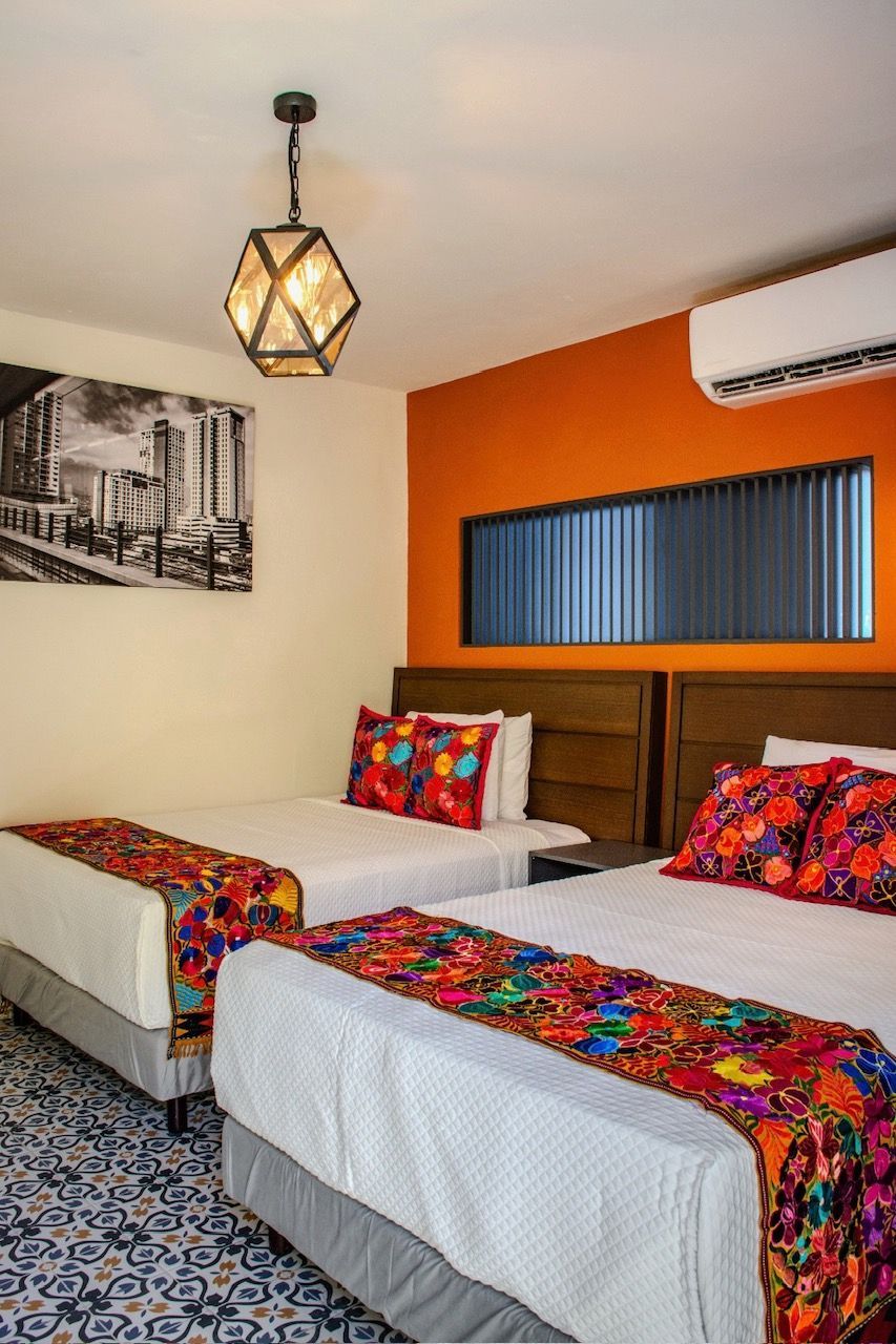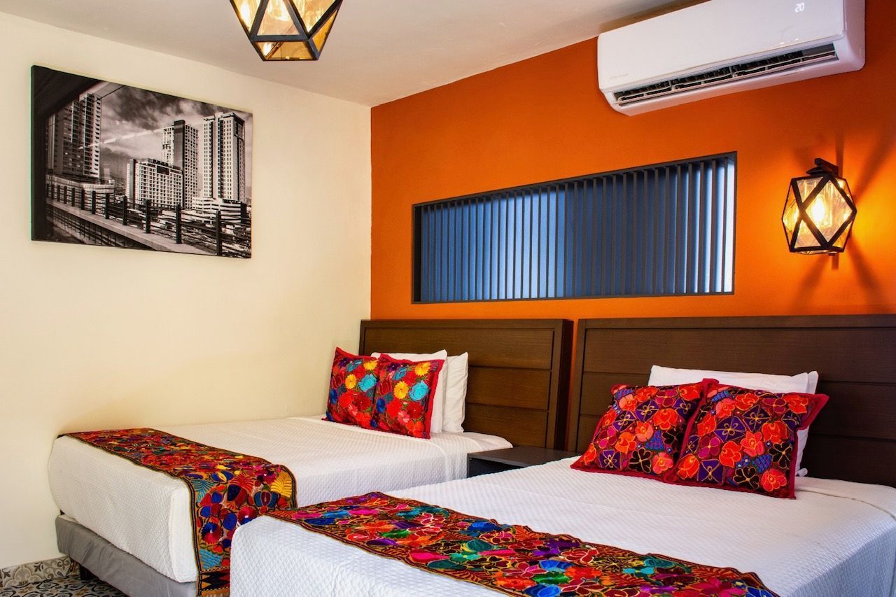 Habitación doble cama Queen con capacidad máxima de 4 huéspedes. Habitación histórica con acabados modernos, super confort. Diseño único con prestaciones de lujo y tecnología. Ven y conoce nuestro concepto de excelencia.